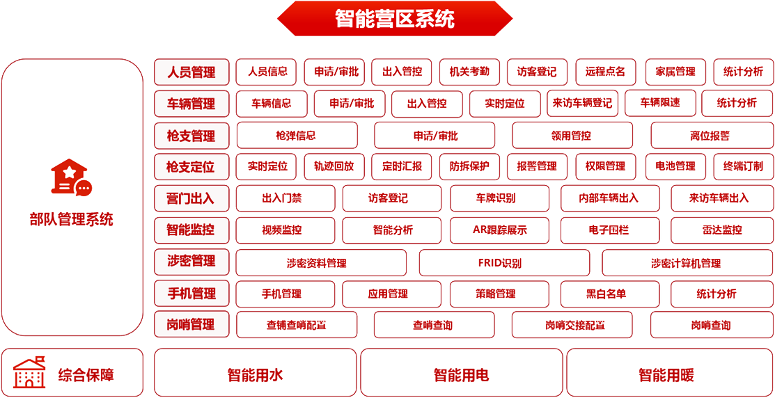 部隊管理系統(tǒng)基于對營區(qū)內人、車、dy、崗哨等建設要求,結合軍隊自身特點及應用現(xiàn)狀,實現(xiàn)網(wǎng)絡化管理,提高人、車等管理的效率。可以提高響應能力,構建人、車、q、d、密的全方位綜合管理的部隊系統(tǒng),保障整體系統(tǒng)高效、穩(wěn)定、安全運行,提升部隊全面信息化建設層次